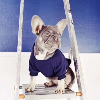 Luna er BJS-rens kontorhund og maskot, der altid byder gæster og medarbejdere velkommen med et kærligt grynt.
